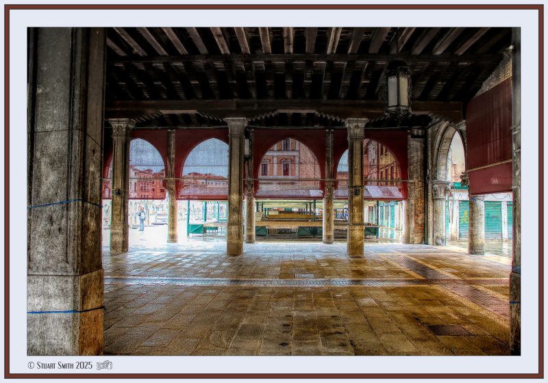 The tower in the background is part of Chiesa di San Giacomo di Rialto. considered to be the oldest church in Venice, consecrated on March 25, 421.